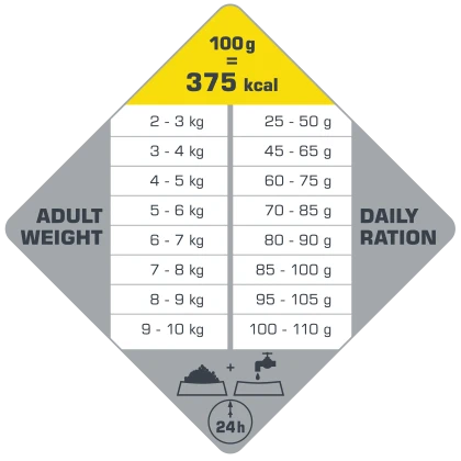 Il est de notoriété qu’en ce qui concerne les races mini, la taille des croquettes est essentielle à une ingestion facile et à une bonne digestibilité. Le granulé de 9 mm seulement est idéal pour le mini-chien adulte et lui assure une bonne hygiène dentaire de base.